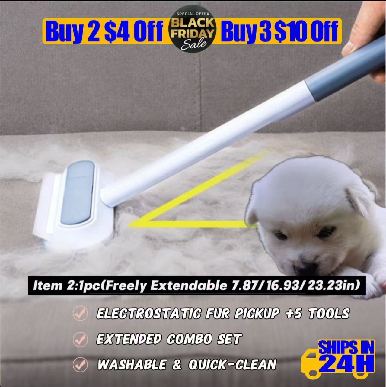 pickup, a 5-in-1 extendable static brush for couches and carpets, a 5-in-1 spray