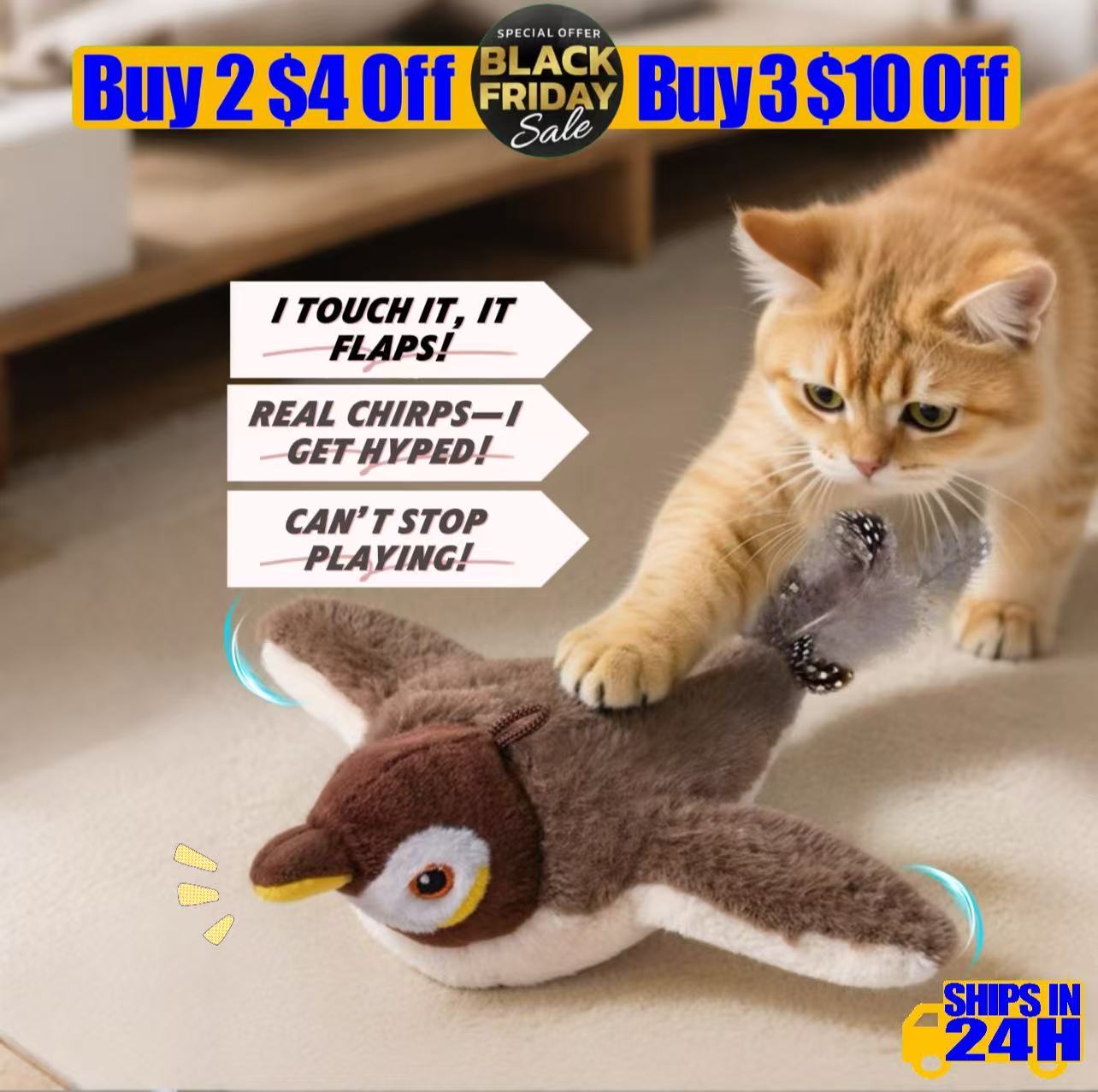 Motion-activated fluttering bird — real wing-flap & chirp stimulation.