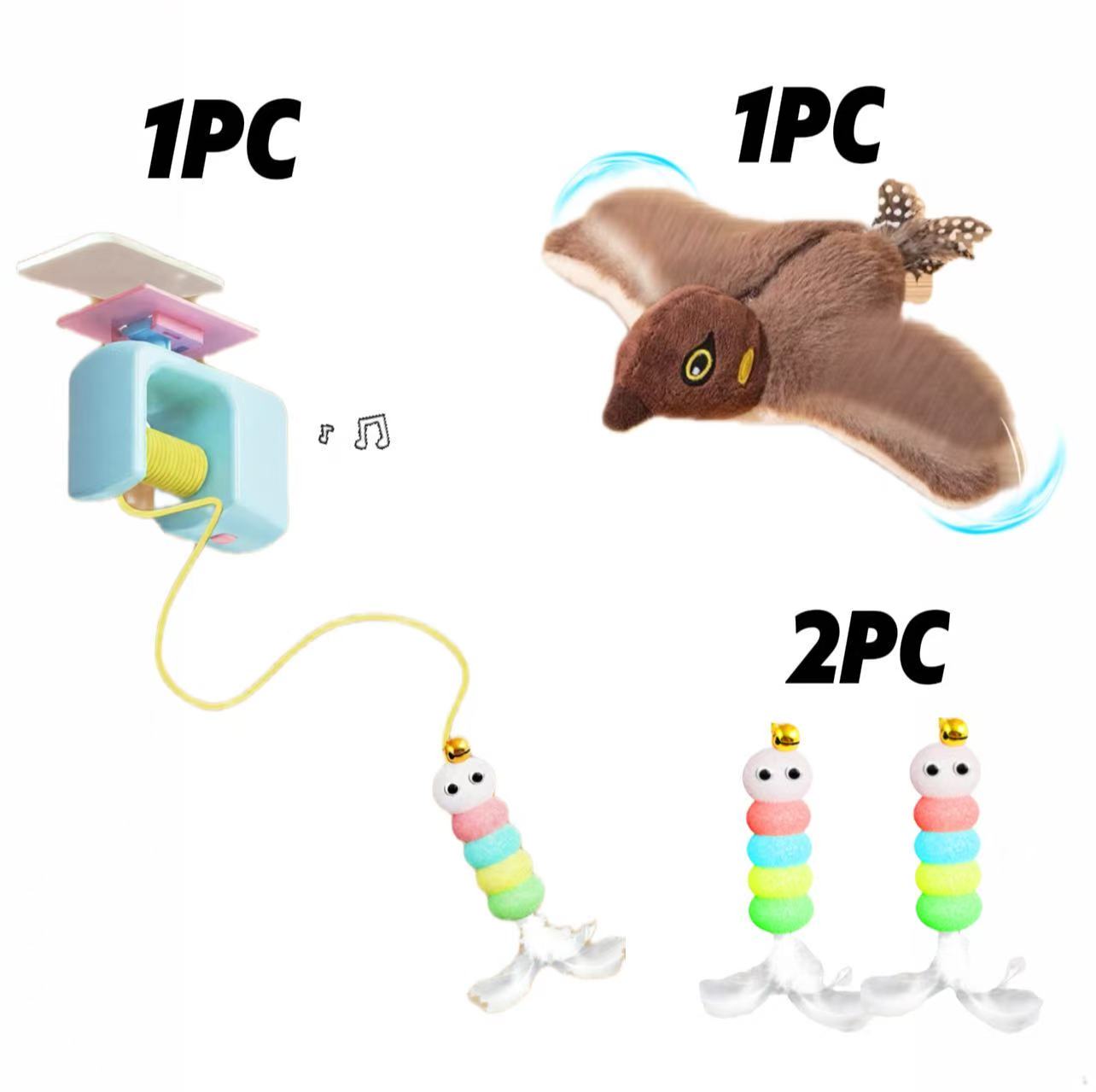 Cat Chase Set combines a USB-rechargeable Cat Yoyo Ball with a motion-activated fluttering bird