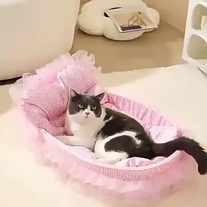 All-Season Pet Bed for Dogs & Cats - Checkered Small Bed with Soft Plush Fabric, Washable & Detachable Pet Mat, Non-Sticky to Fur, Easy to Clean, Ruffle Details - Cozy Sleeping for Indoor Cats & Small Dogs, Cat Bed, Playful D